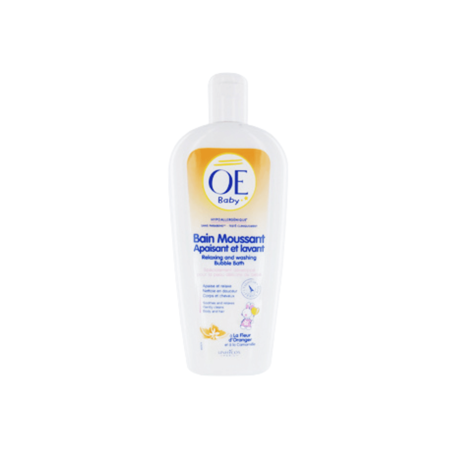 Le bain moussant apaisant et lavant OÉ Baby est idéal pour le bain des bébés. Sa formule enrichie à la fleur d’oranger et à la Camomille relaxe et nettoie la peau en douceur. Corps et cheveux. Spécialement développé pour la peau délicate de bébé. Hypoallergénique*, sans parabens**, testé cliniquement. *Formulé pour minimiser les risques d’allergies, **Conservé sans parabens.