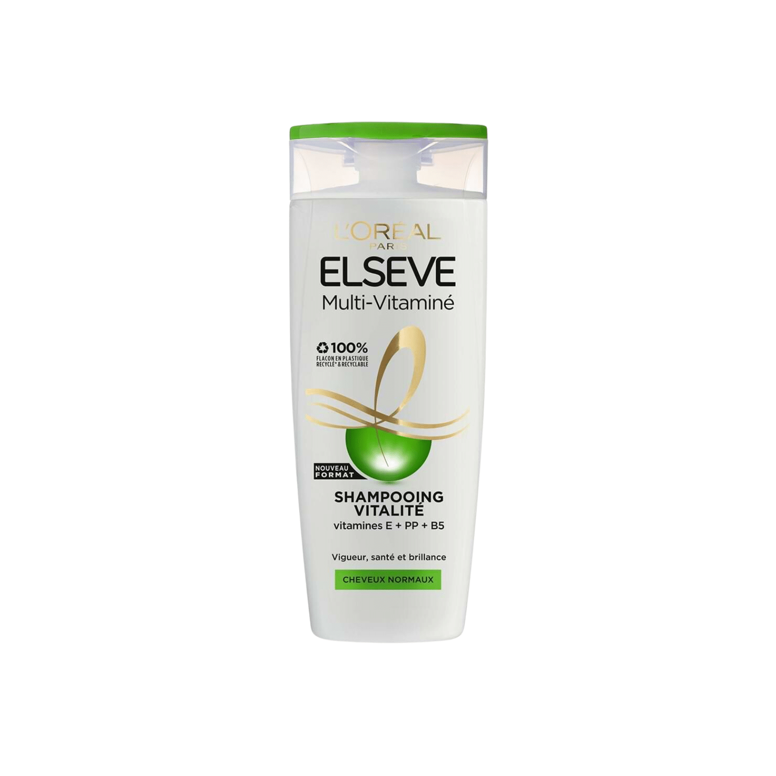 Shampoing Revitalisant 2 en 1 pour Cheveux Normaux enrichi en vitamines E + PP + B5|• Flacon en plastique 100% recyclé* et recyclable|• Fabriqué en France|*hors colorants et bouchon. Des cheveux vigoureux, brillants et pleins de santé.